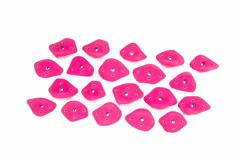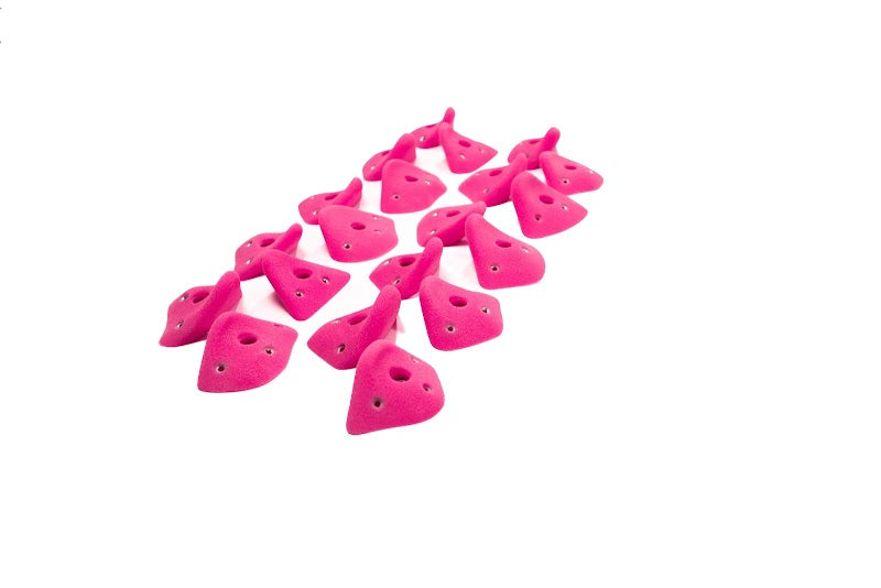 Tall, proud, and wild - The Doses are an all around good time. These fins will add diversity and character to any climbing wall, as they are extremely versatile on any angle or grade. The entire series is complete with 70 holds (50 hands and 20 xs/feet), ranging from X-Small to 5XL, all are compatible with screws or bolts. They intentionally pair nicely with the Tracer Edges. Get your dose!