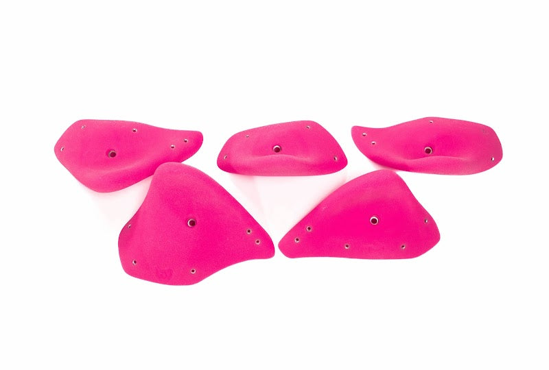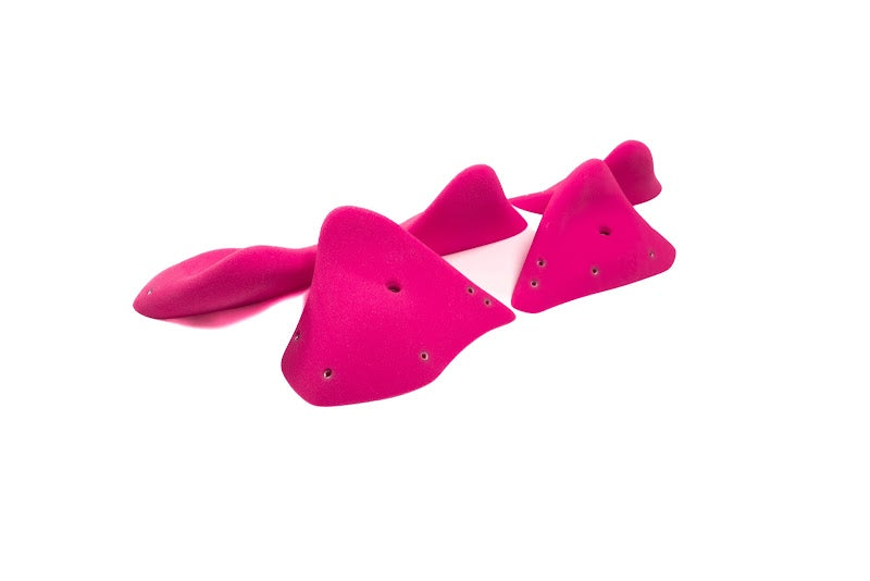 Tall, proud, and wild - The Doses are an all around good time. These fins will add diversity and character to any climbing wall, as they are extremely versatile on any angle or grade. The entire series is complete with 70 holds (50 hands and 20 xs/feet), ranging from X-Small to 5XL, all are compatible with screws or bolts. They intentionally pair nicely with the Tracer Edges. Get your dose!