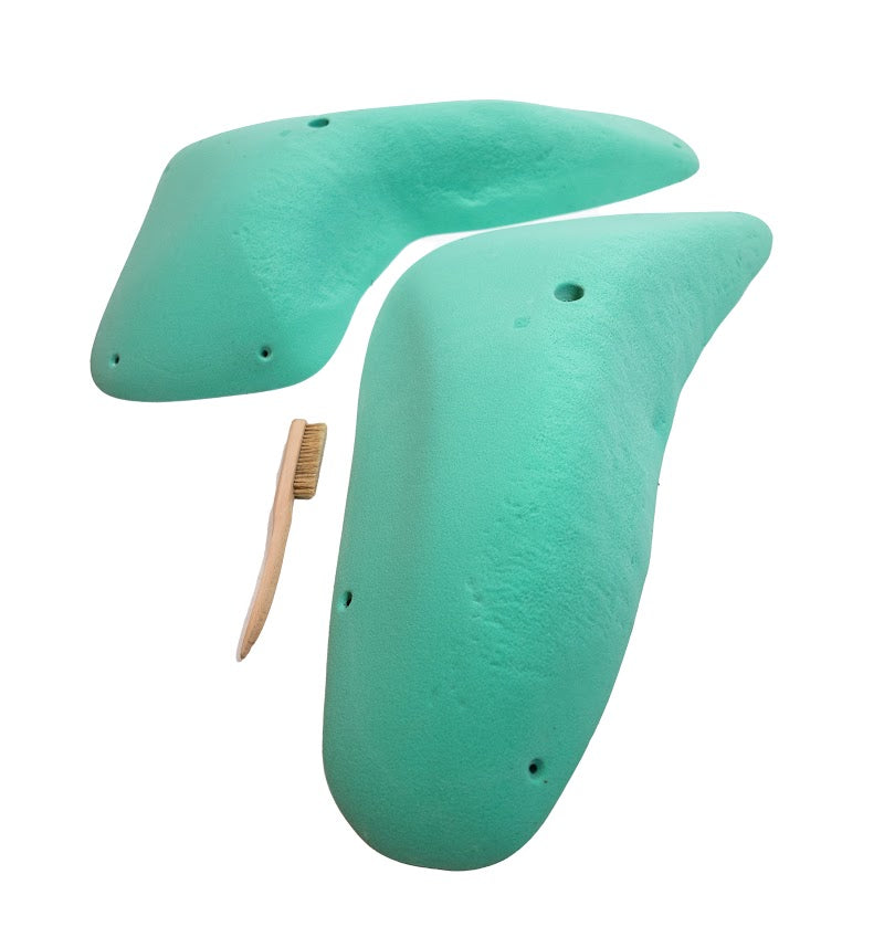 A set of 2, 3-XL matchable, textured slopers. These are designed to pair up with the Blocked Jugs B to make seams, cracks, and slots.