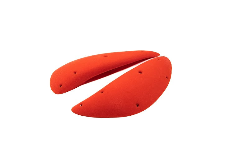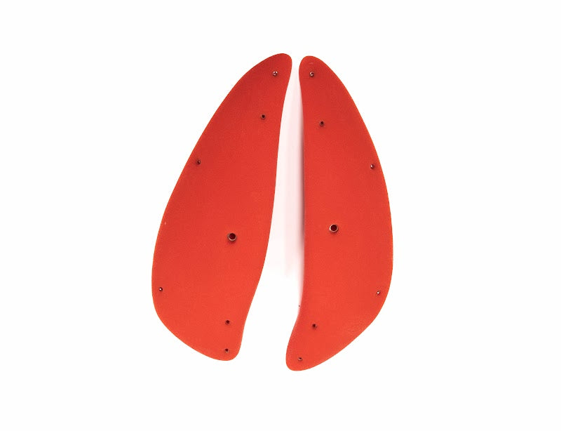 This set of 2 stretchy, long, rail jugs are great for beginning climbers, home walls, easy routes, or for just monkeying around! They are intentionally designed to be opposing with a "mirrored" look. Both are bolt-on or screw-on compatible.