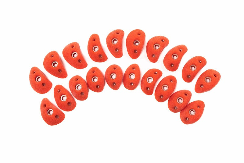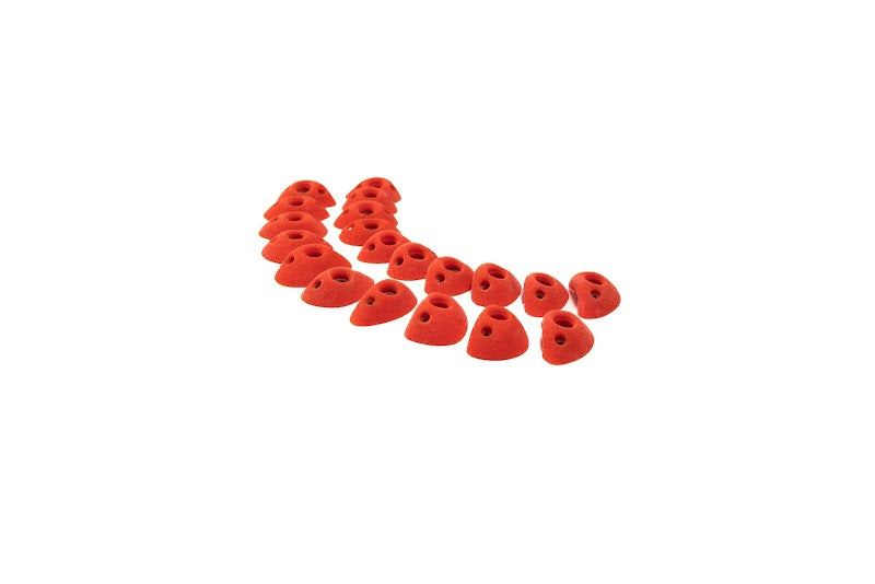 This set of 20 bucket feet are perfect for any easy or moderate route. While these are intended to be footholds, they also pass as some pretty comfortable bucket crimps (with a little seam to bite down on). These are bolt-on and screw-on compatible, and are fun for any ability level.