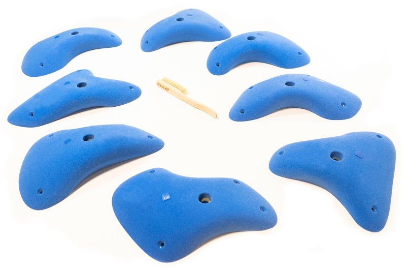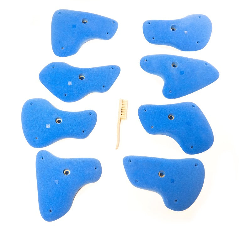 A set of 8 medium sized pinches. Suitable for angles up to 45 degrees. Level of incut and positivity varies between grips. This set accompanies the Beak Pinches, and the new Hammer Head pinches well.