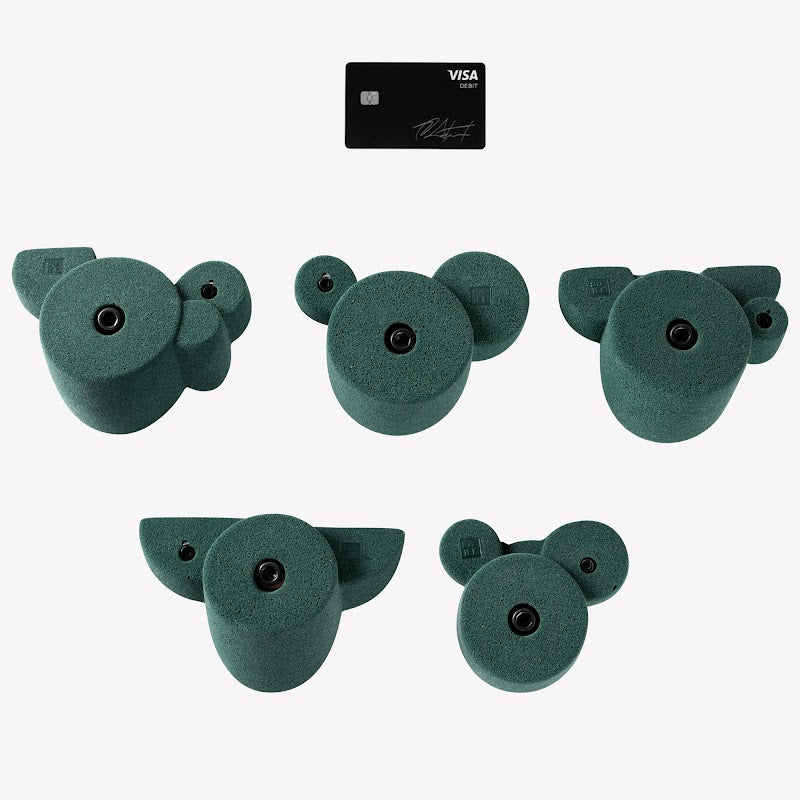 Set of 4 small pipes climbing holds that jut from the wall at an angle and can be used as edges or mini jugs. Shaped by Jason Kehl