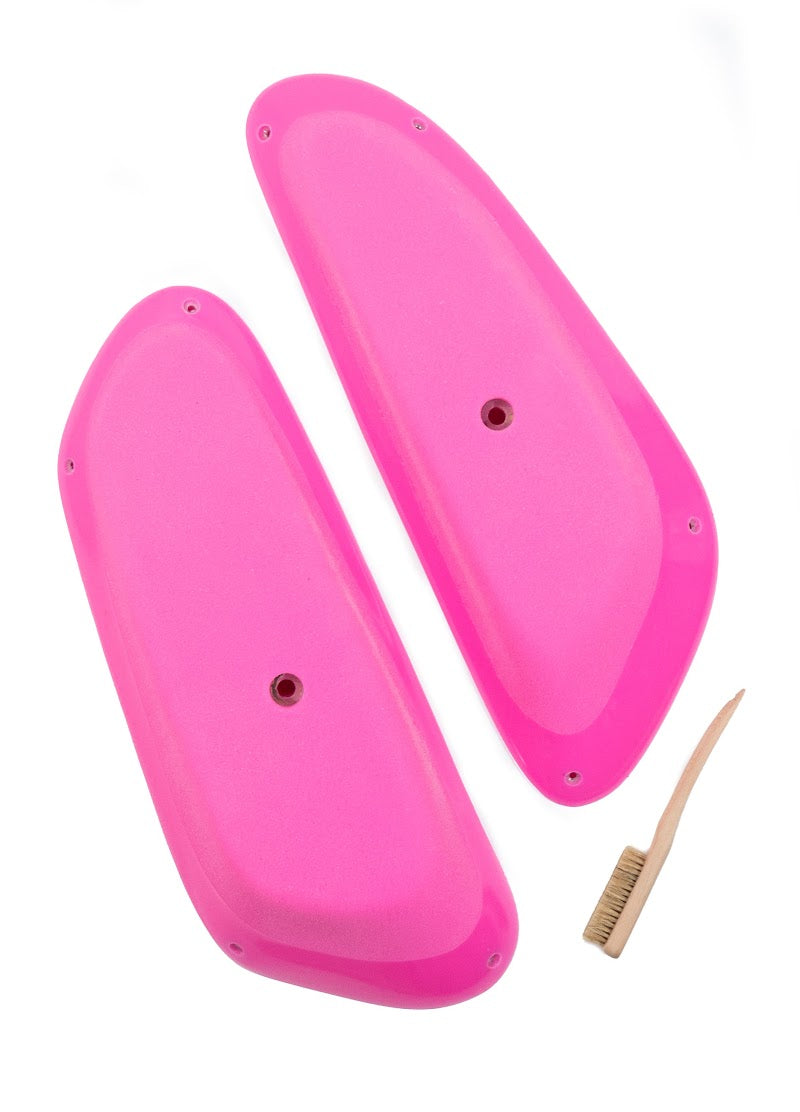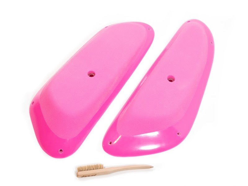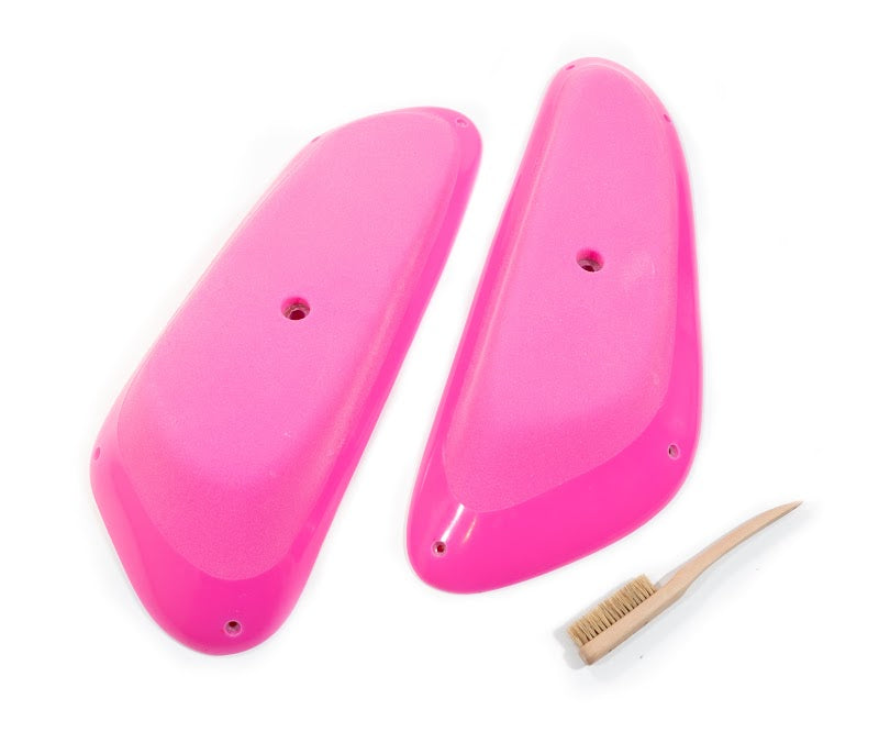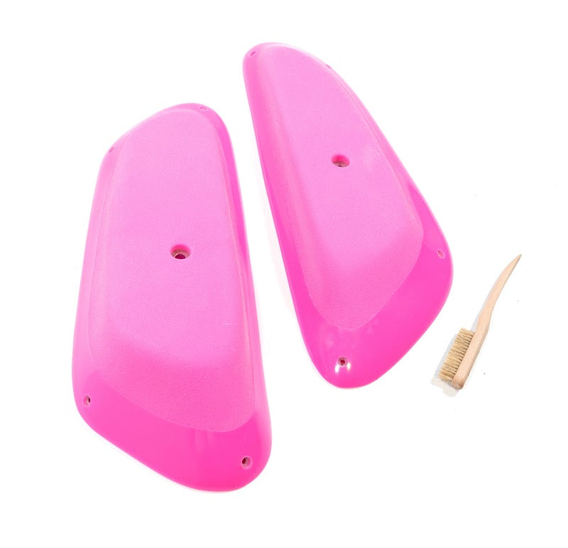 A set of 2 slopey, dual tex, stump holds. Can be used as pinches or sloper and well suited for vert, slab, and on volumes.
