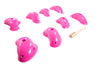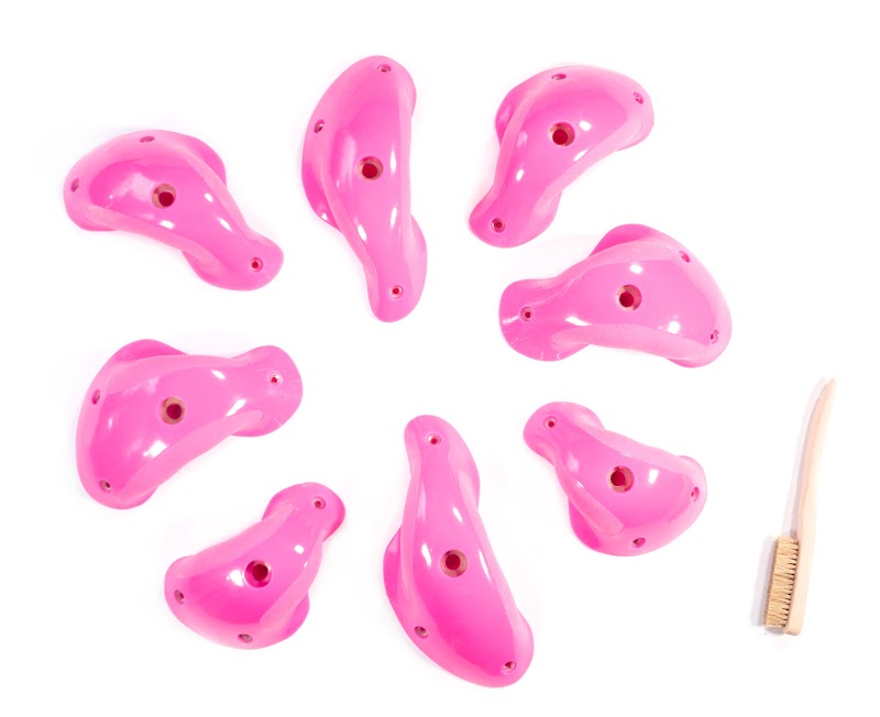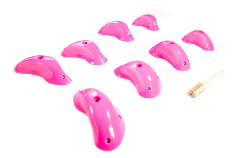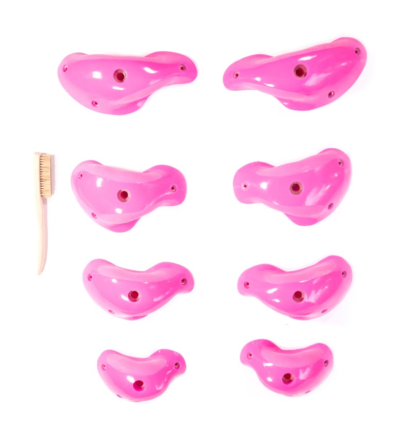 A set of 8 varied symmetrical pinches. Great for setting that balanced banger at the gym, or for training on your home wall. Smaller profile, varied grips sizes, and fine texture make these a great addition to any wall.