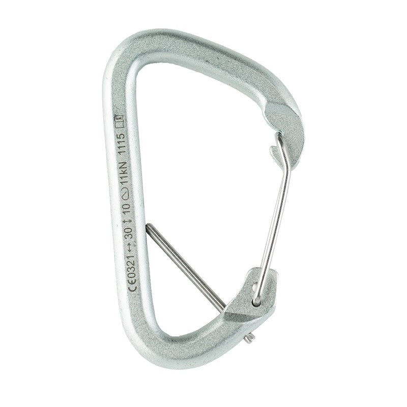 Trango’s Steel Wiregate combines excellent handling with extreme durability. The plated steel material is highly resistant to corrosion and wear from rope abrasion, and the steel pin keeps it oriented correctly no matter what kind of quickdraw you use. The pin is easy to set in place, and it can be left off if you don’t need it.