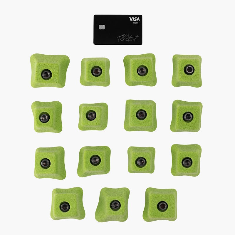 A mini version of the Wrecktangles, these cube-like footholds are very positive and great on any angle. Shaped by Jason Kehl